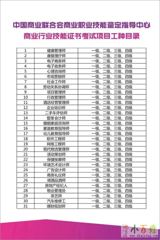 那今天就要给大家介绍一个部门,工种齐全、颁发的证书全国通用,而且费用还低,一起来看看吧小百姓网www.xbaixing.com。