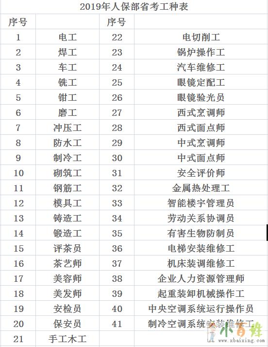 人保部41个工种均可报考(具体工种如图)小~百~姓~网