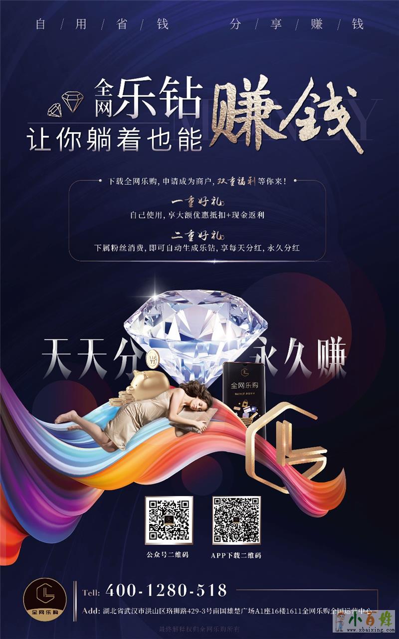 全民持钻,这里的钻就是指全网乐购独有的乐钻,在全网乐购平台,乐钻就代表股份,相当于全网乐购的IPO原始股,有了乐钻每个月就可以享受平台的分红,是一份长远且稳定的收益www.xbaixing.com小百姓网。而在全网乐购上市之后,这些股份还会升值,还可以进行交易。