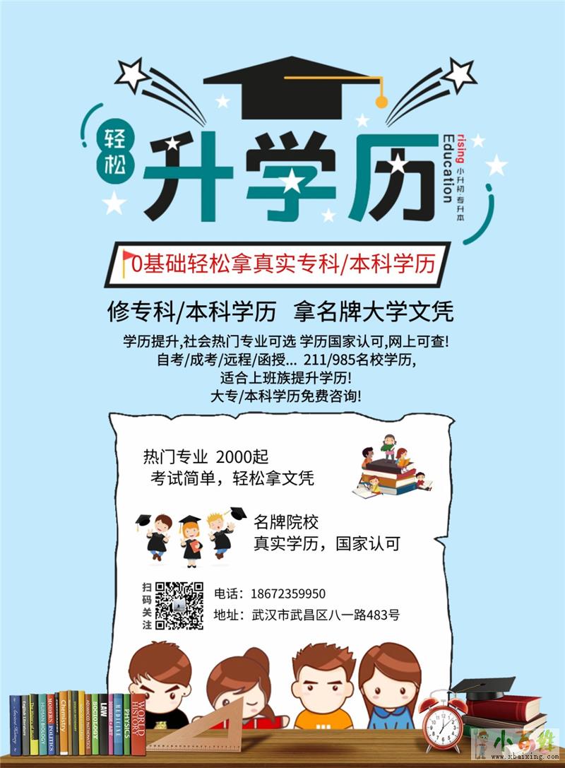 只需配合考试就行,考试简单,学费便宜,轻松毕业,来自www.xbaixing.com0基础、0压力,适合没有基础的在职人员提升学历,国家承认,社会认可,学信网可查